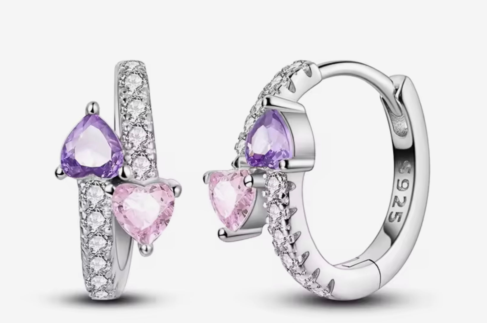 Crafted from high-quality 925 sterling silver, the Daphne Huggies feature delicate pink and purple heart accents that add a subtle yet sophisticated touch to your look.