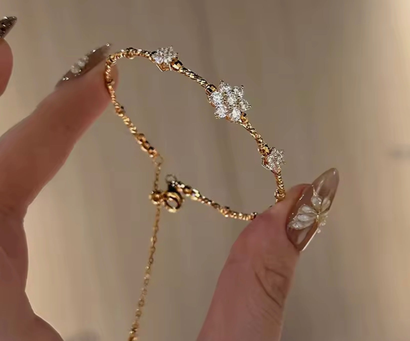 Crafted from 925 sterling silver with a luxurious gold finish, this adjustable bracelet features intricate flower detailing that adds a refined touch to any outfit.