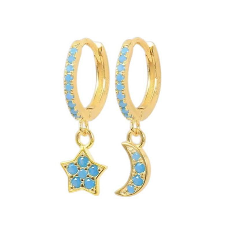 Crafted from high-quality 925 sterling silver, the Celestia Huggies feature delicate blue star and moon motifs, offering a refined celestial touch.