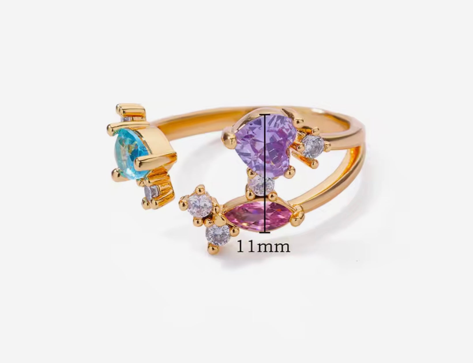 This adjustable ring combines durable stainless steel with a vibrant gold finish, offering both longevity and a striking appearance.