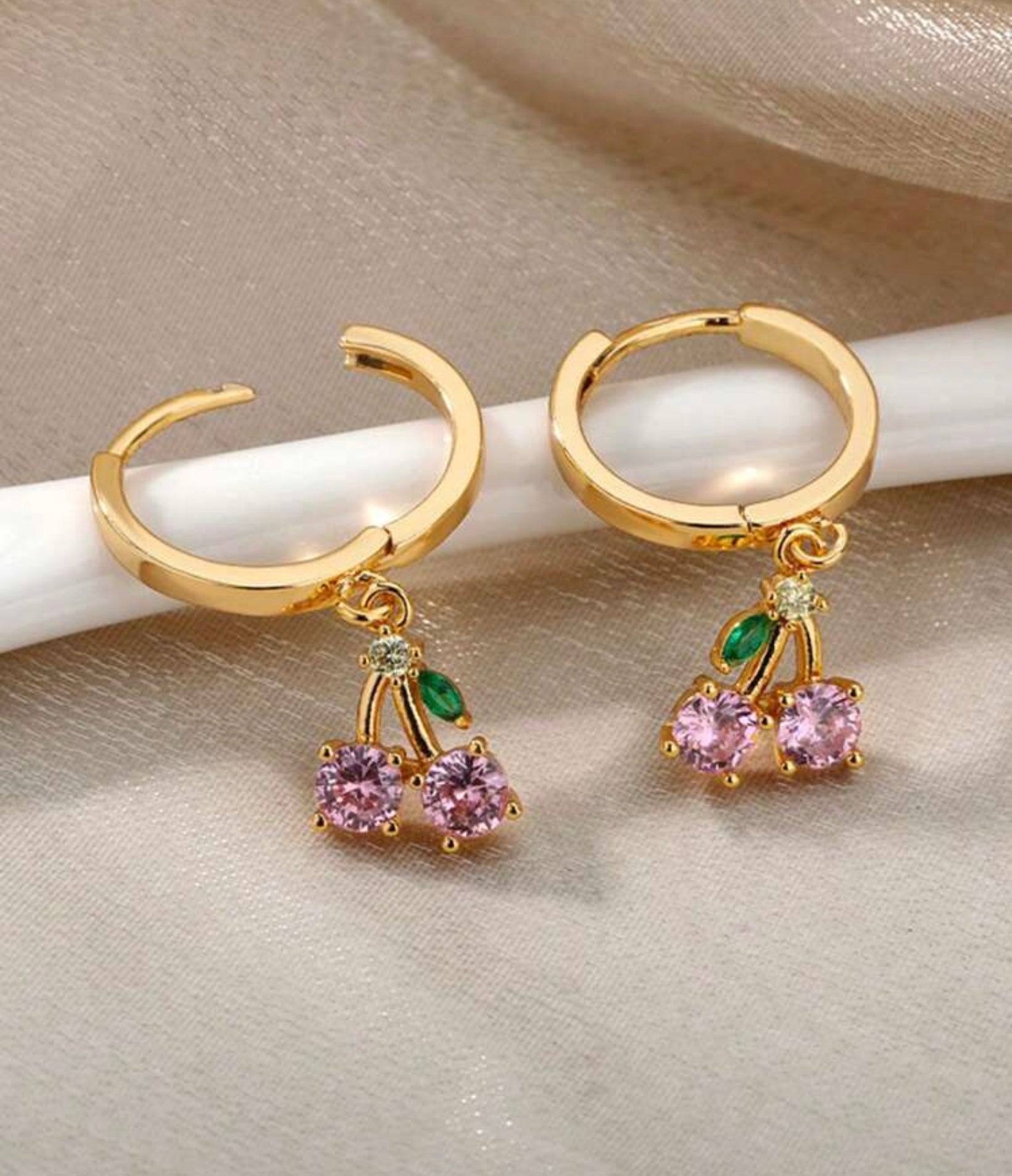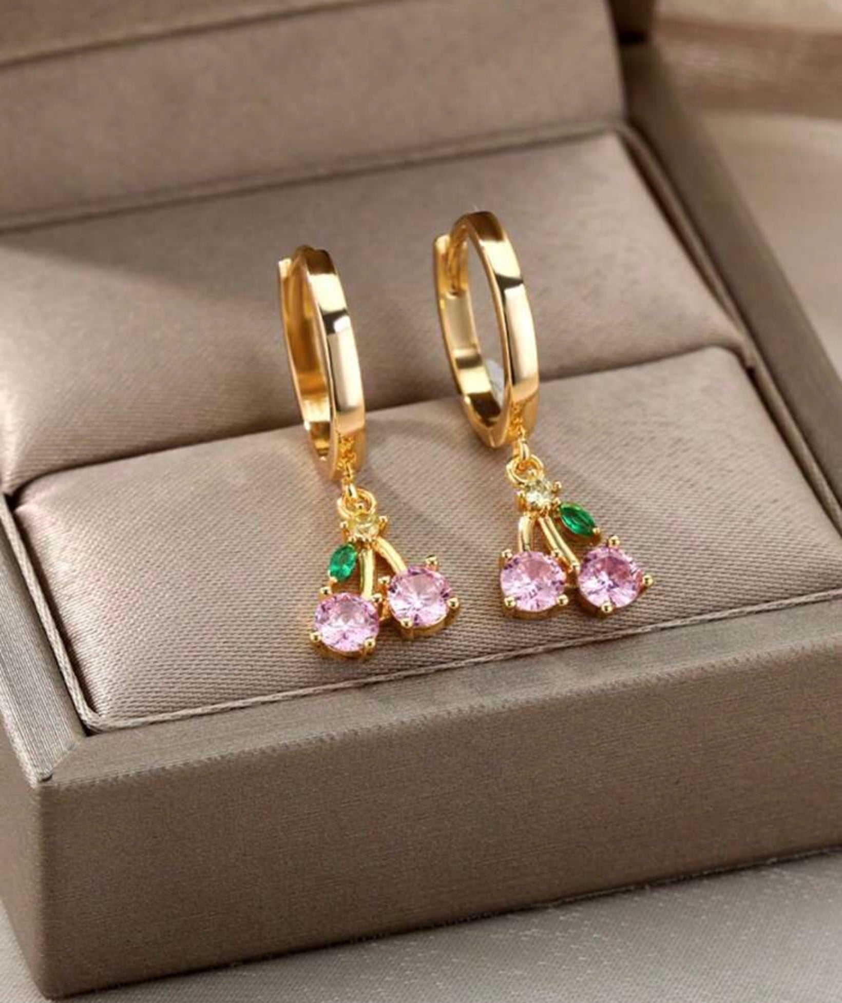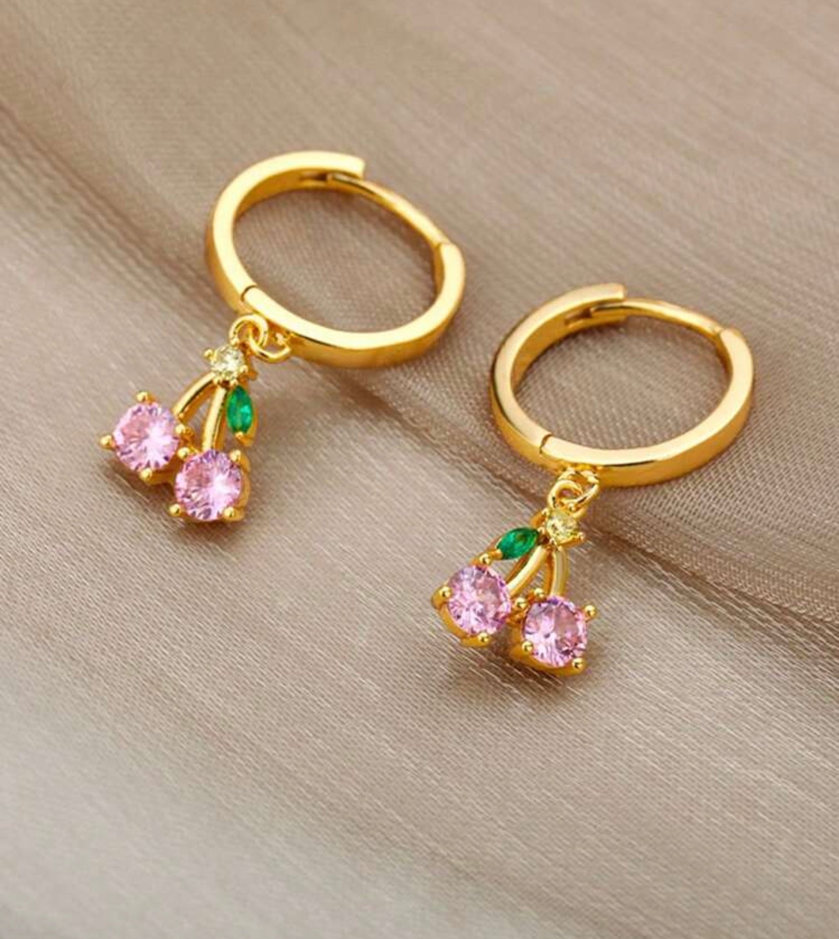 Crafted from durable gold stainless steel, the Cherie Huggies feature a delicate cherry pink finish that adds a subtle yet sophisticated pop of colour.