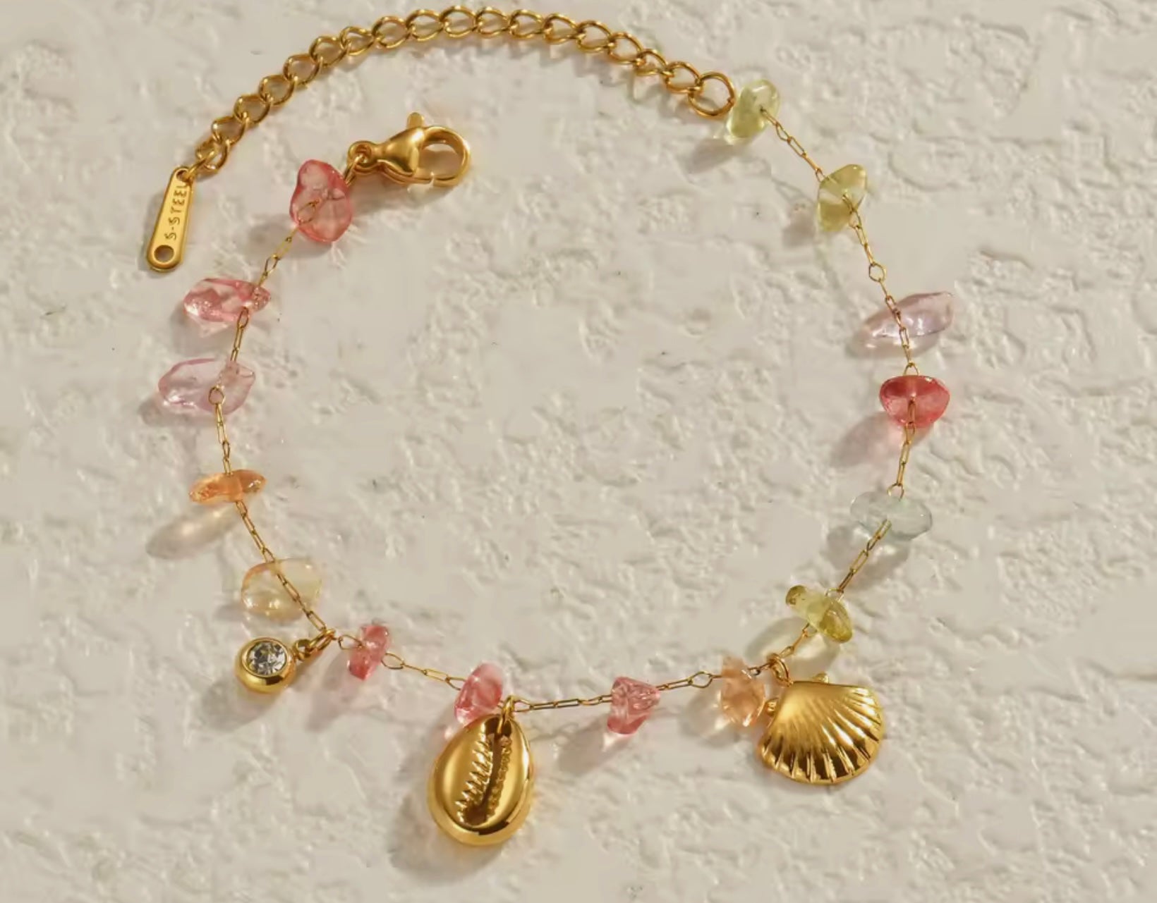 The Cleo Bracelet combines durable stainless steel with vibrant, colourful stones, creating a stylish accessory perfect for both golf enthusiasts and beach lovers.