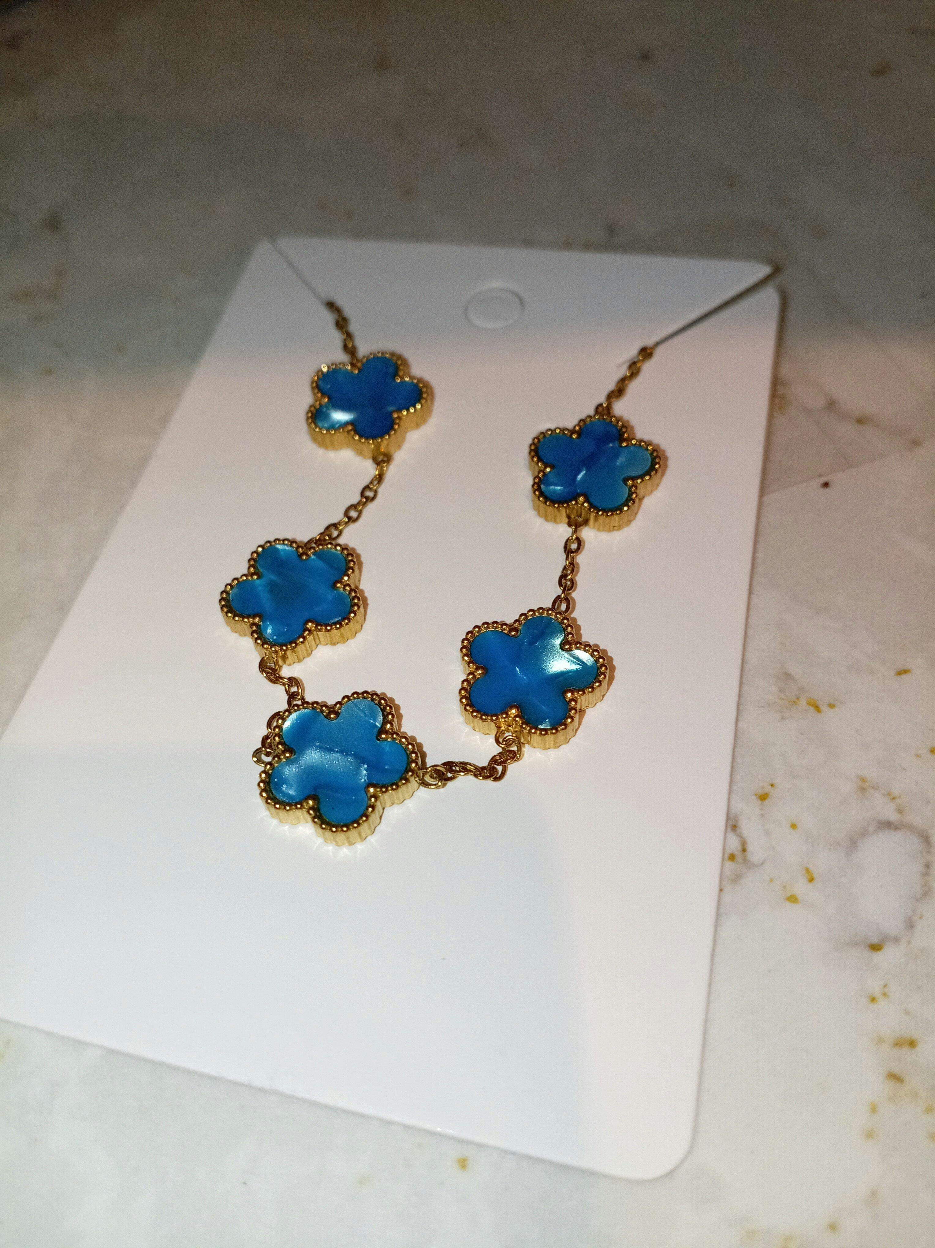Crafted from durable stainless steel, this blue clover bracelet offers a unique blend of elegance and resilience.