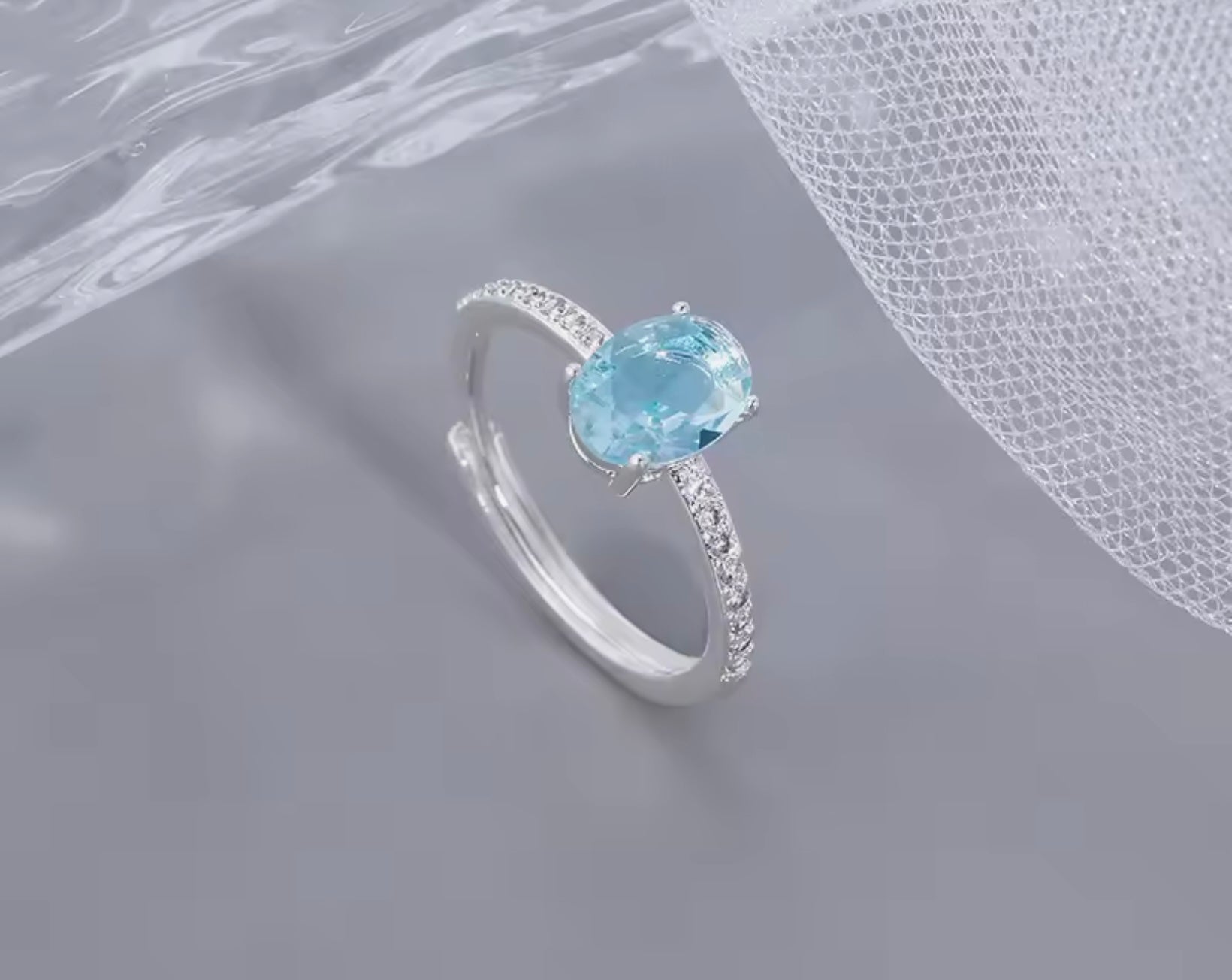 Crafted from durable stainless steel, the Hema Ring features an elegant silver design and a striking blue stone.