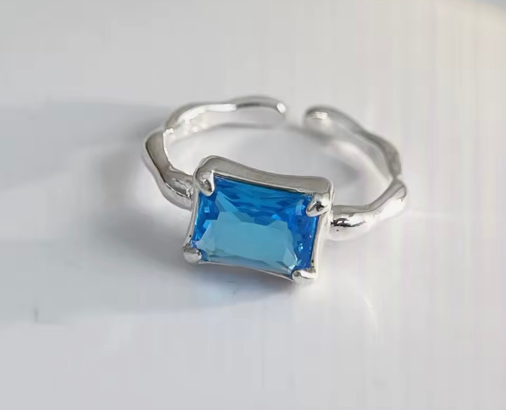 This expertly-crafted Honey Ring features a stainless steel band adorned with a stunning rectangular blue stone.
