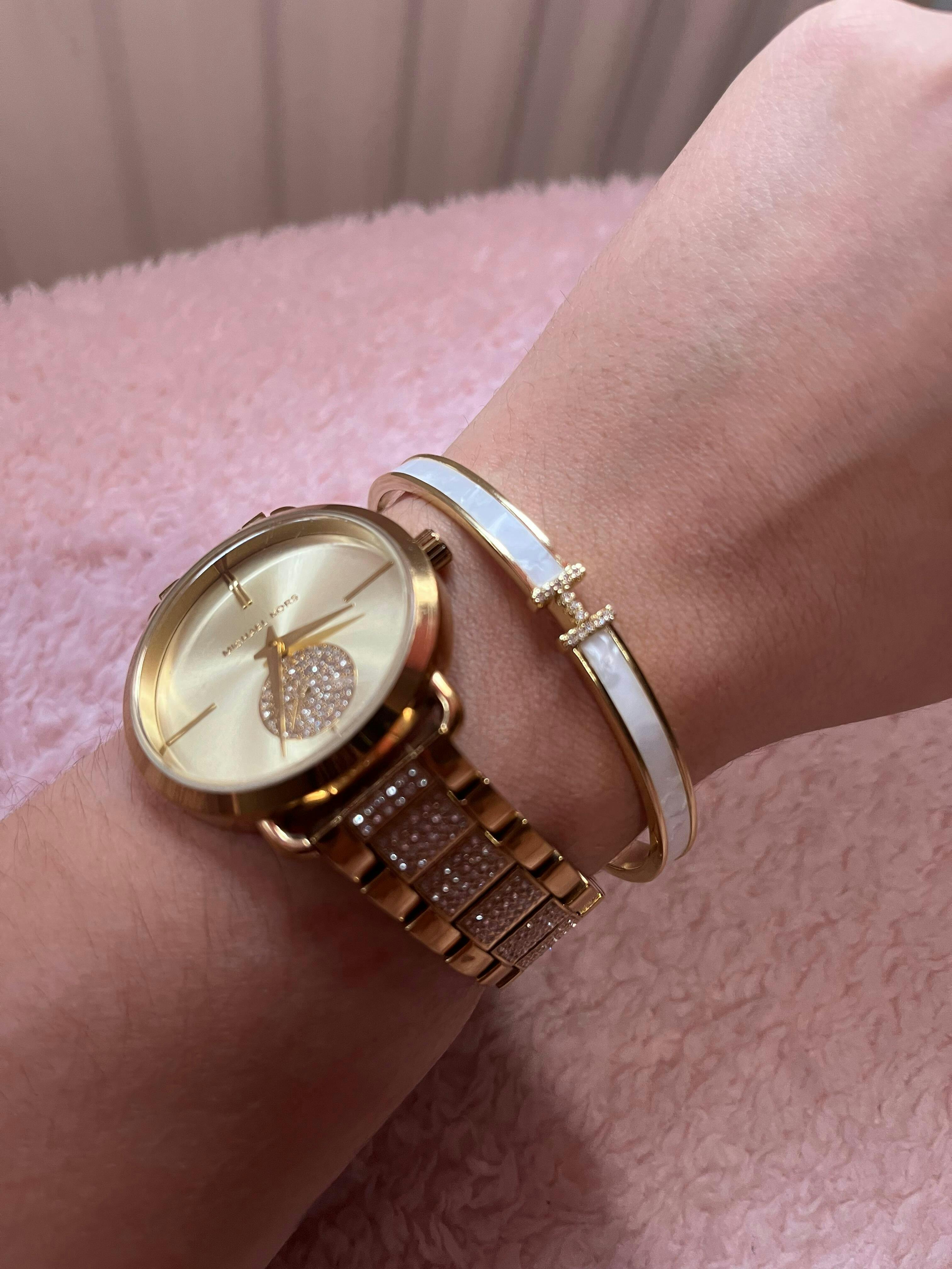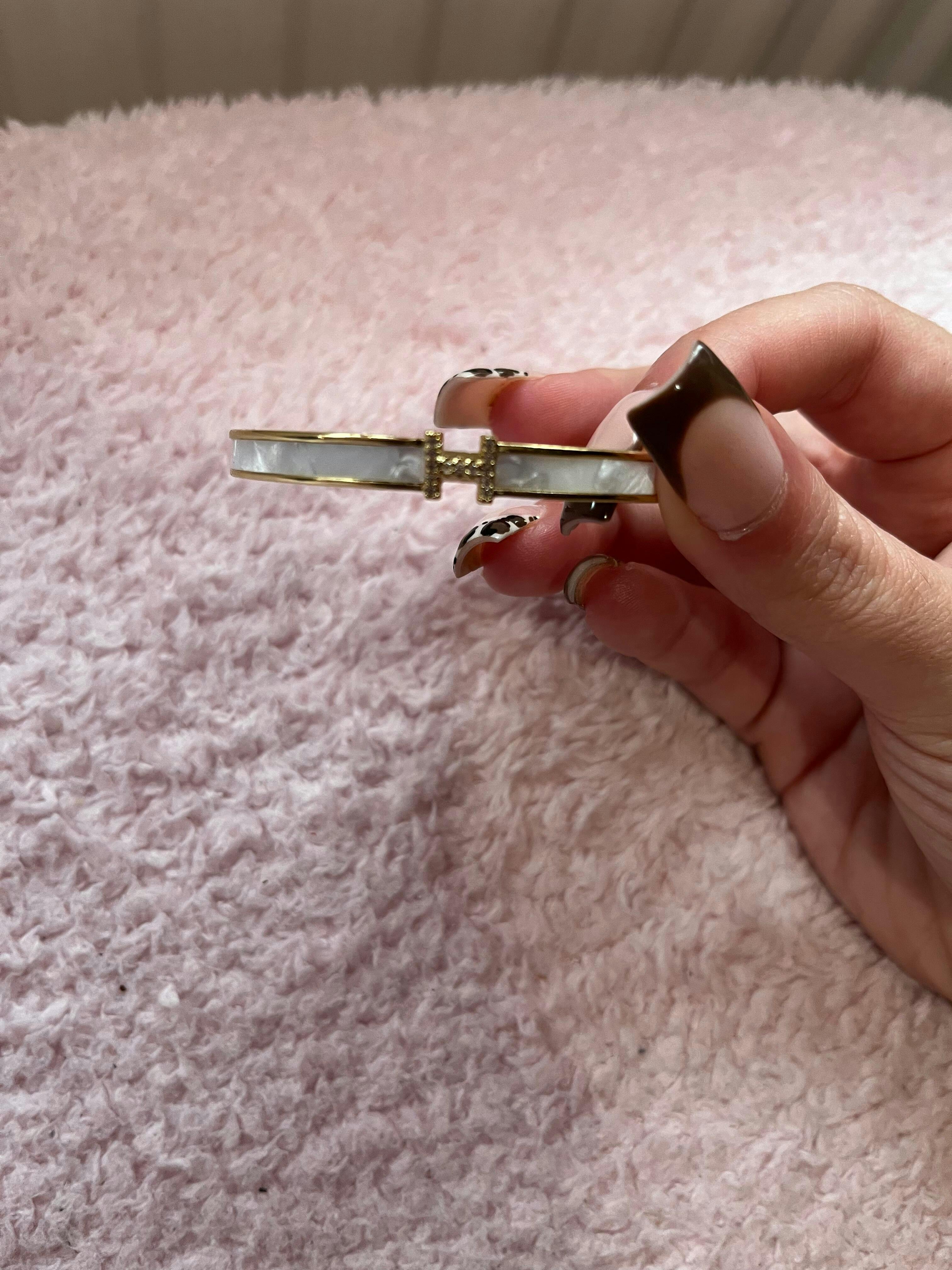 Featuring a stunning gold finish and adjustable size, this bangle offers both versatility and durability. Elevate your style with this must-have accessory.