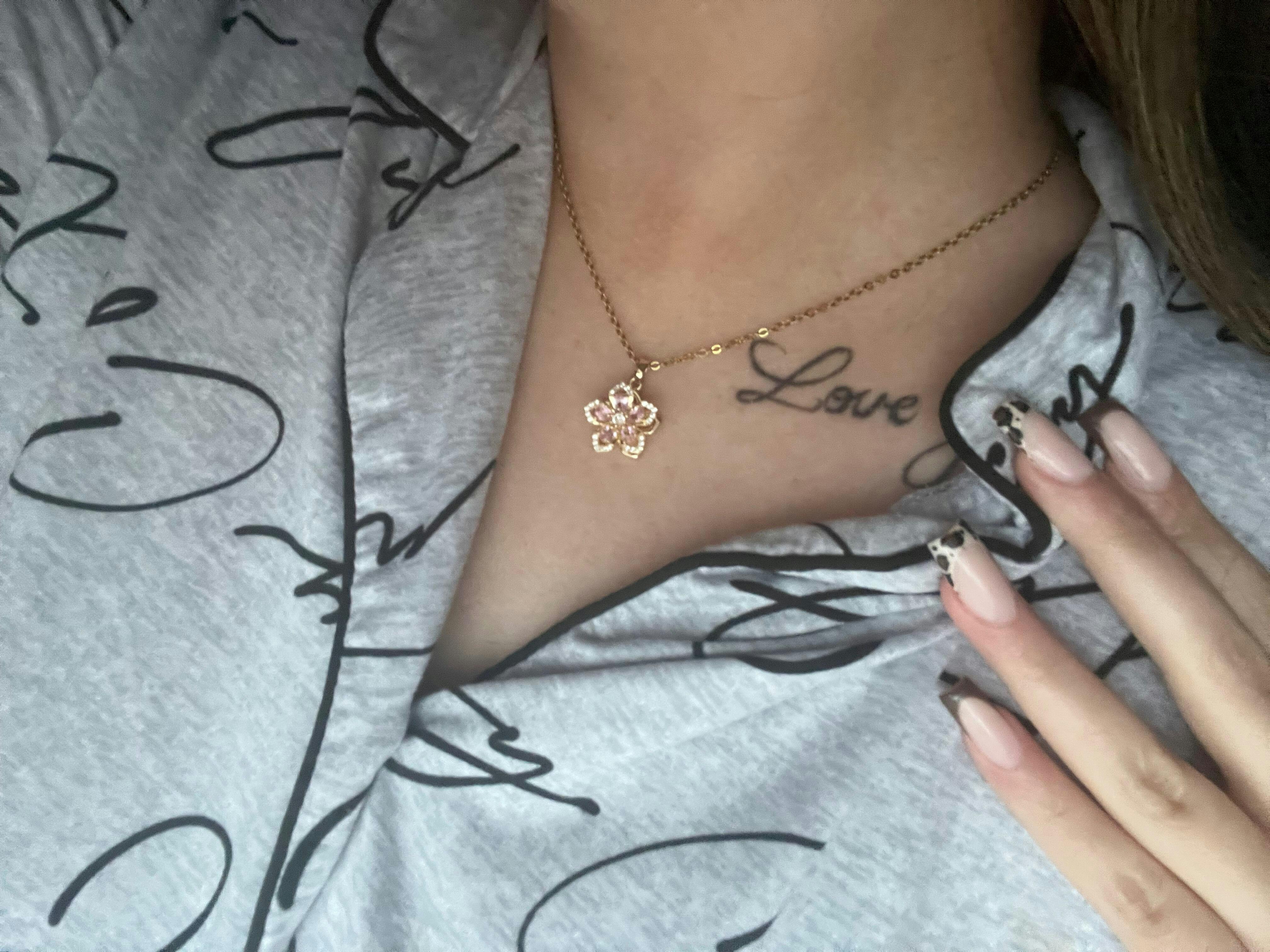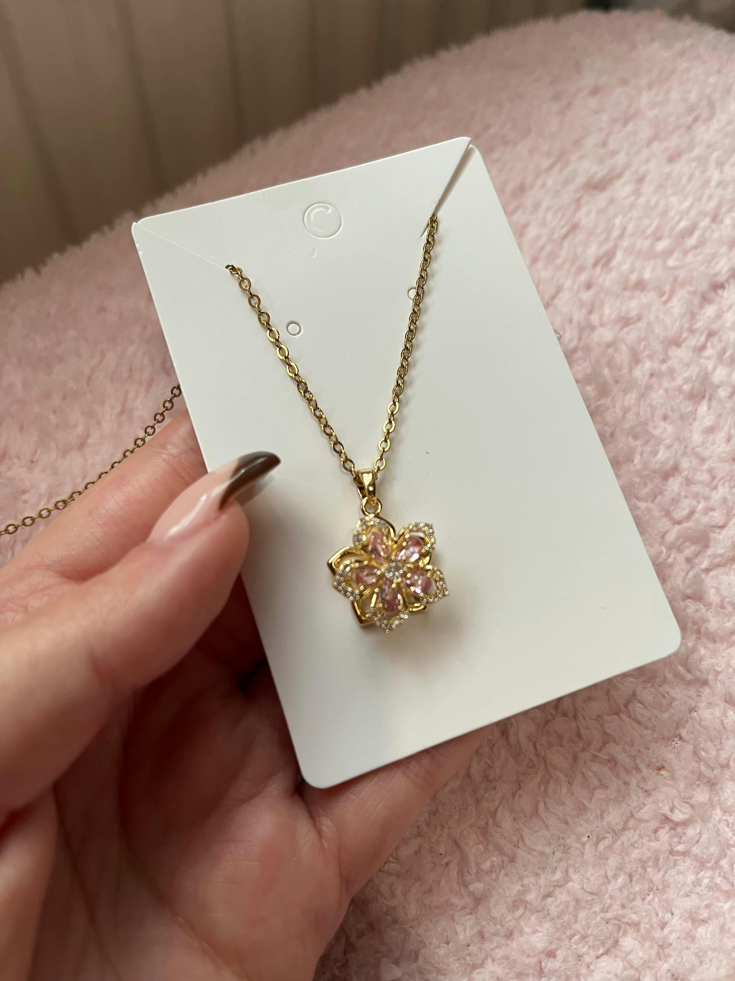 The Ivy Necklace features a delicate light pink flower pendant crafted from durable stainless steel with a gold finish.