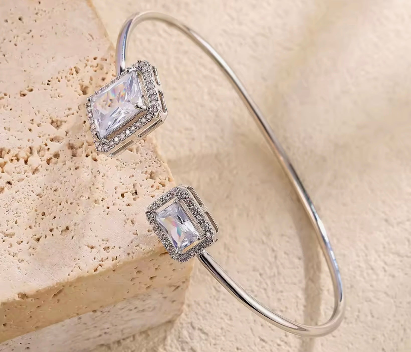 Expertly crafted with stainless steel and adorned with a sparkling rectangle gemstone, the Jessica Bangle is a versatile and elegant piece.