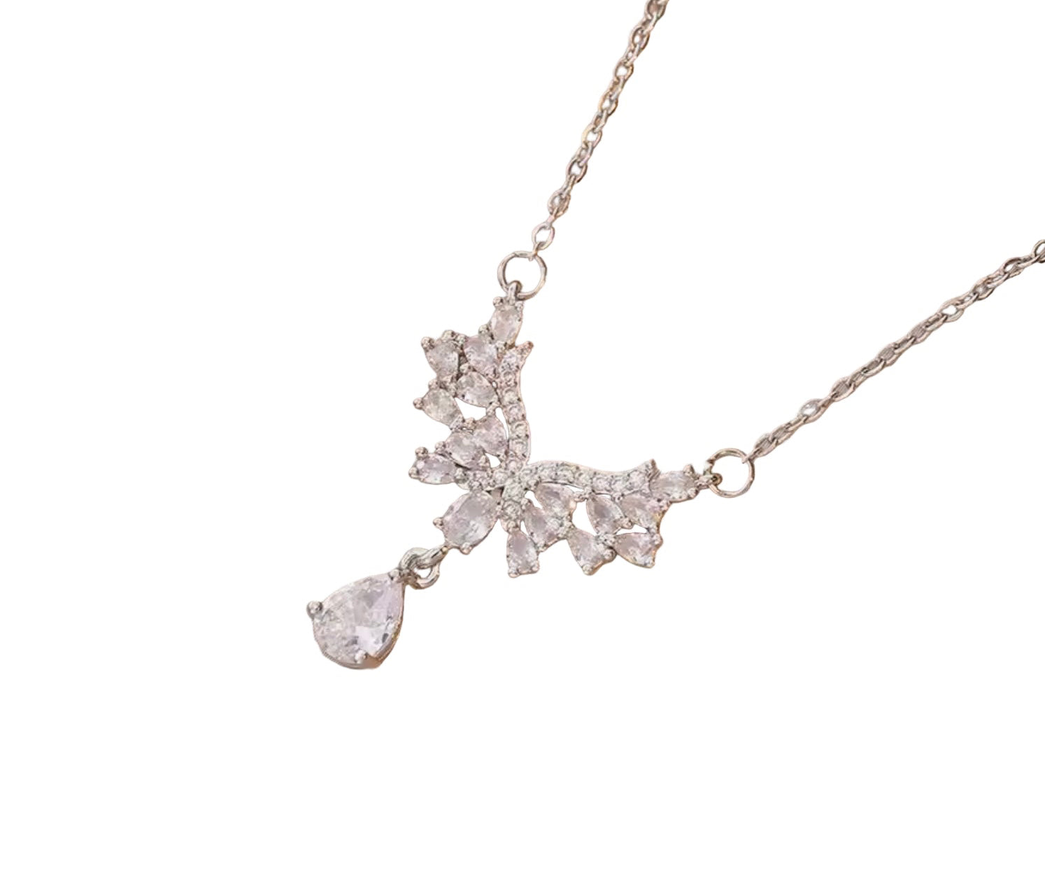 Crafted from durable stainless steel, the Lylah Necklace features a sleek silver finish and a sparkling diamond drop pendant.