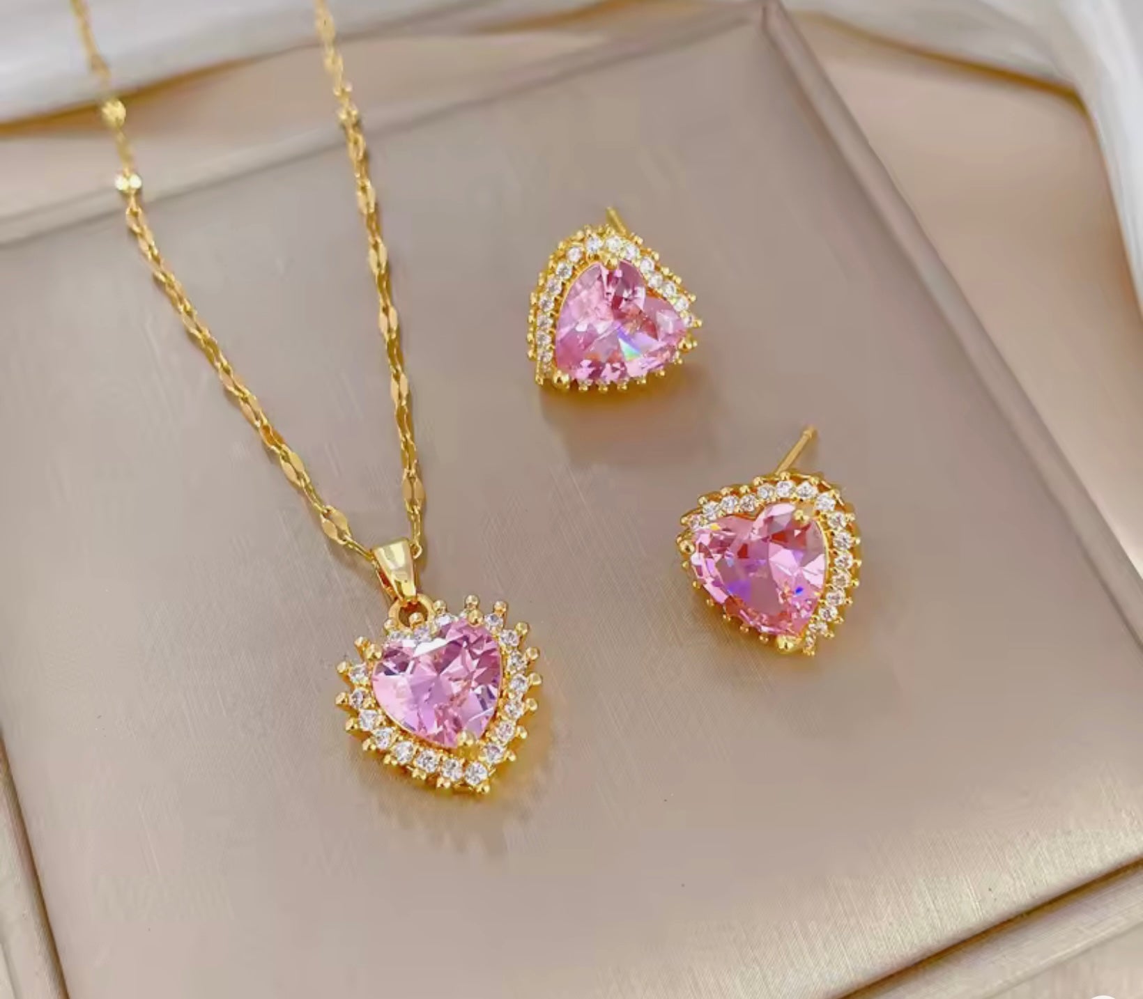 These stainless steel earring studs feature delicate pink heart crystals, combining durability with refined elegance.
