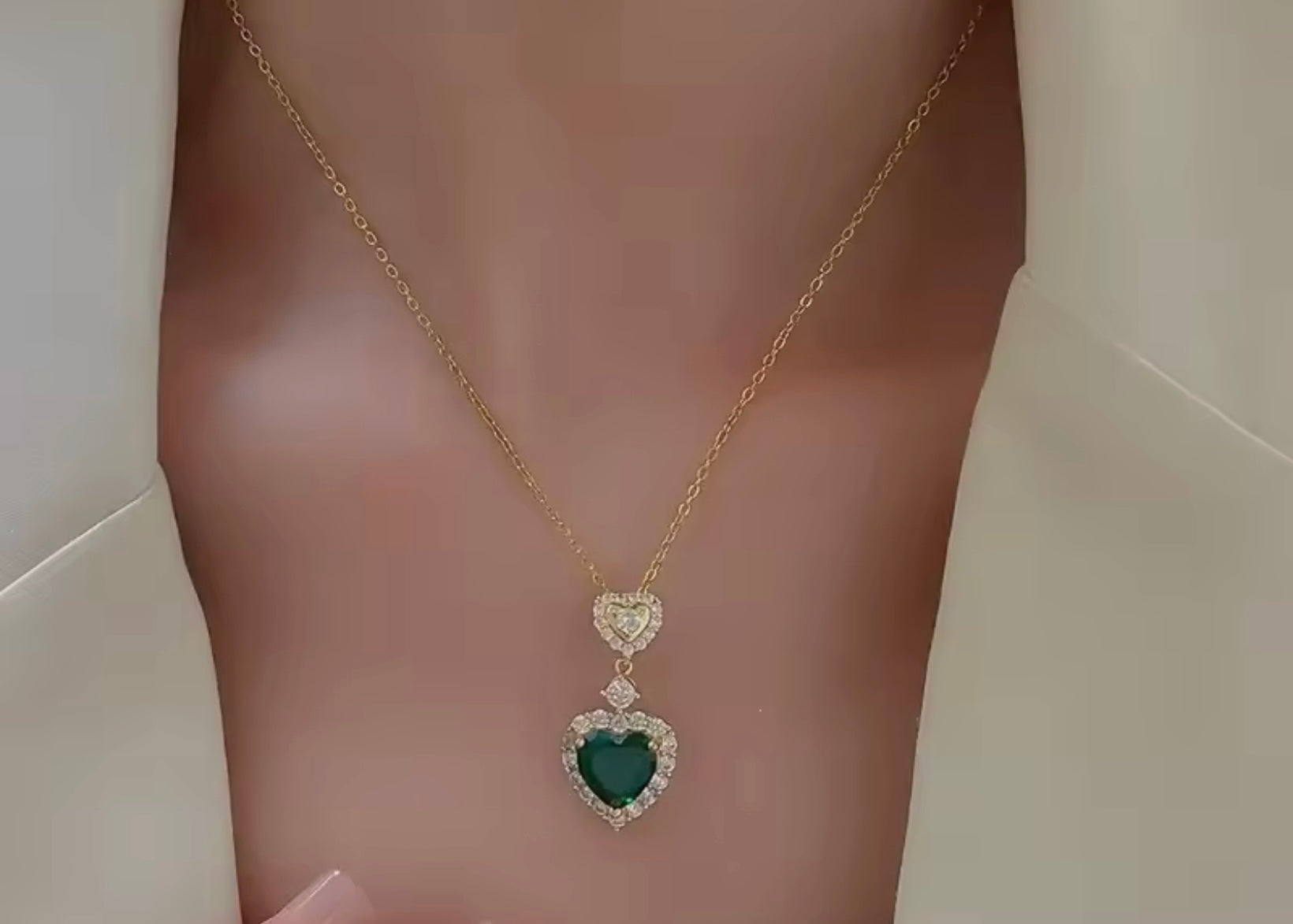 Crafted from durable stainless steel with a luxurious gold finish, the Bellara Necklace features a striking emerald-cut heart pendant.
